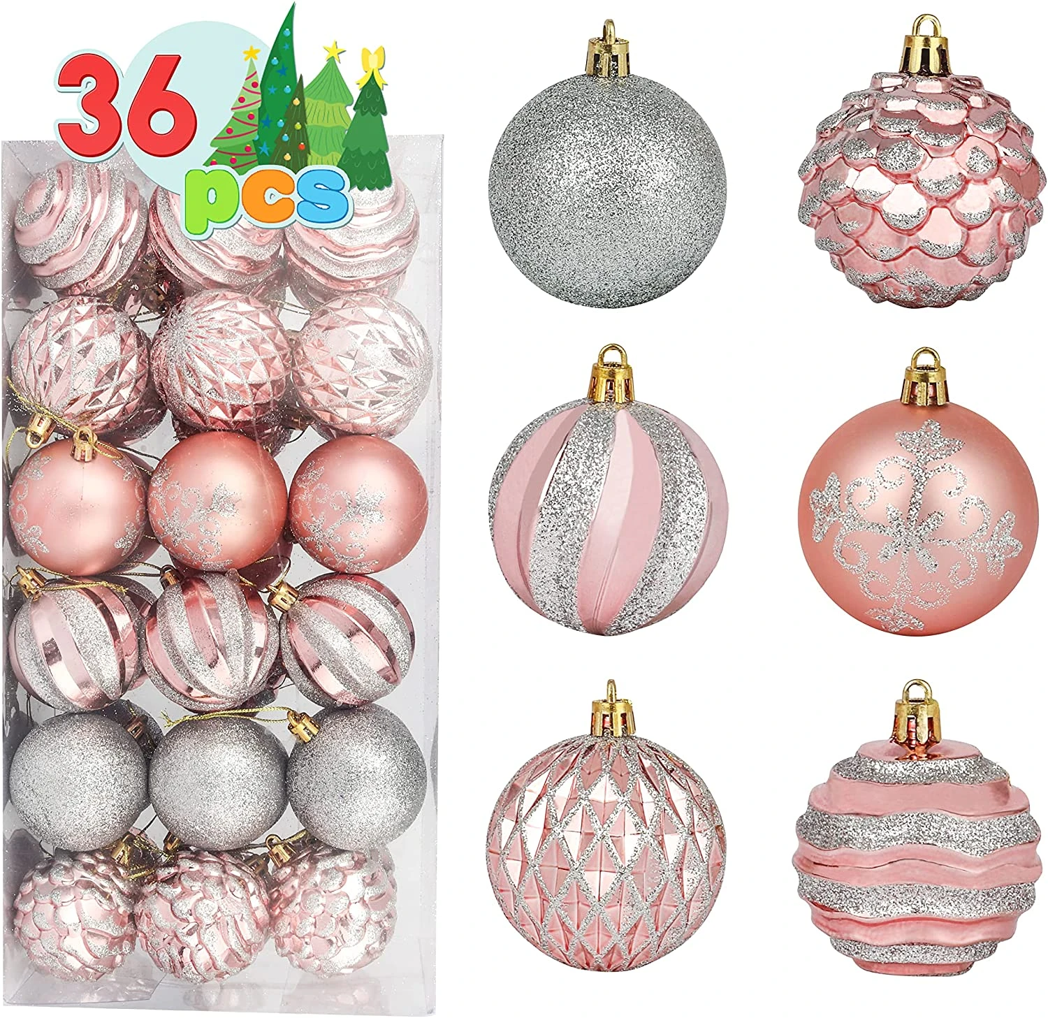 Rose Gold & Silver Christmas Ball Ornaments 36 Pcs