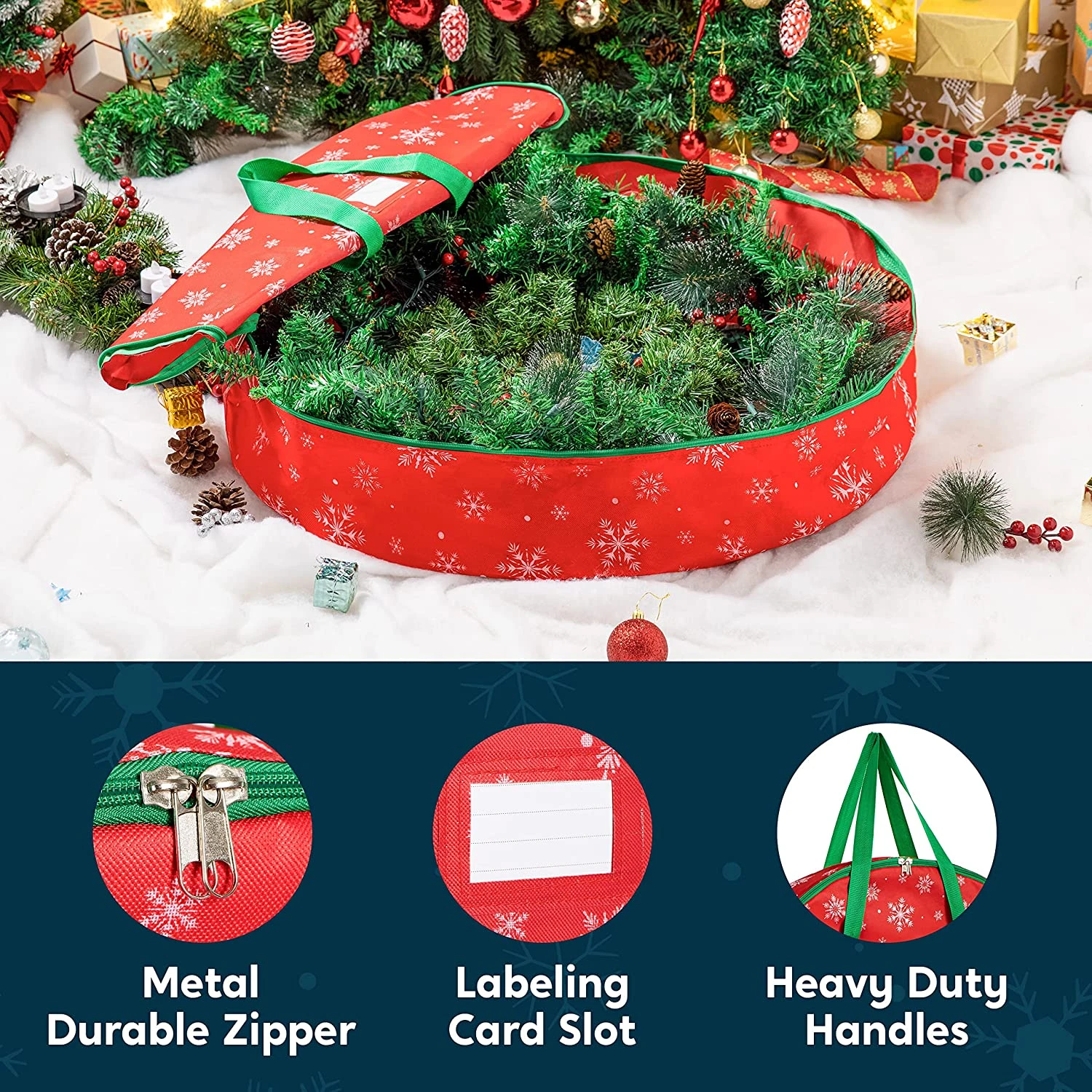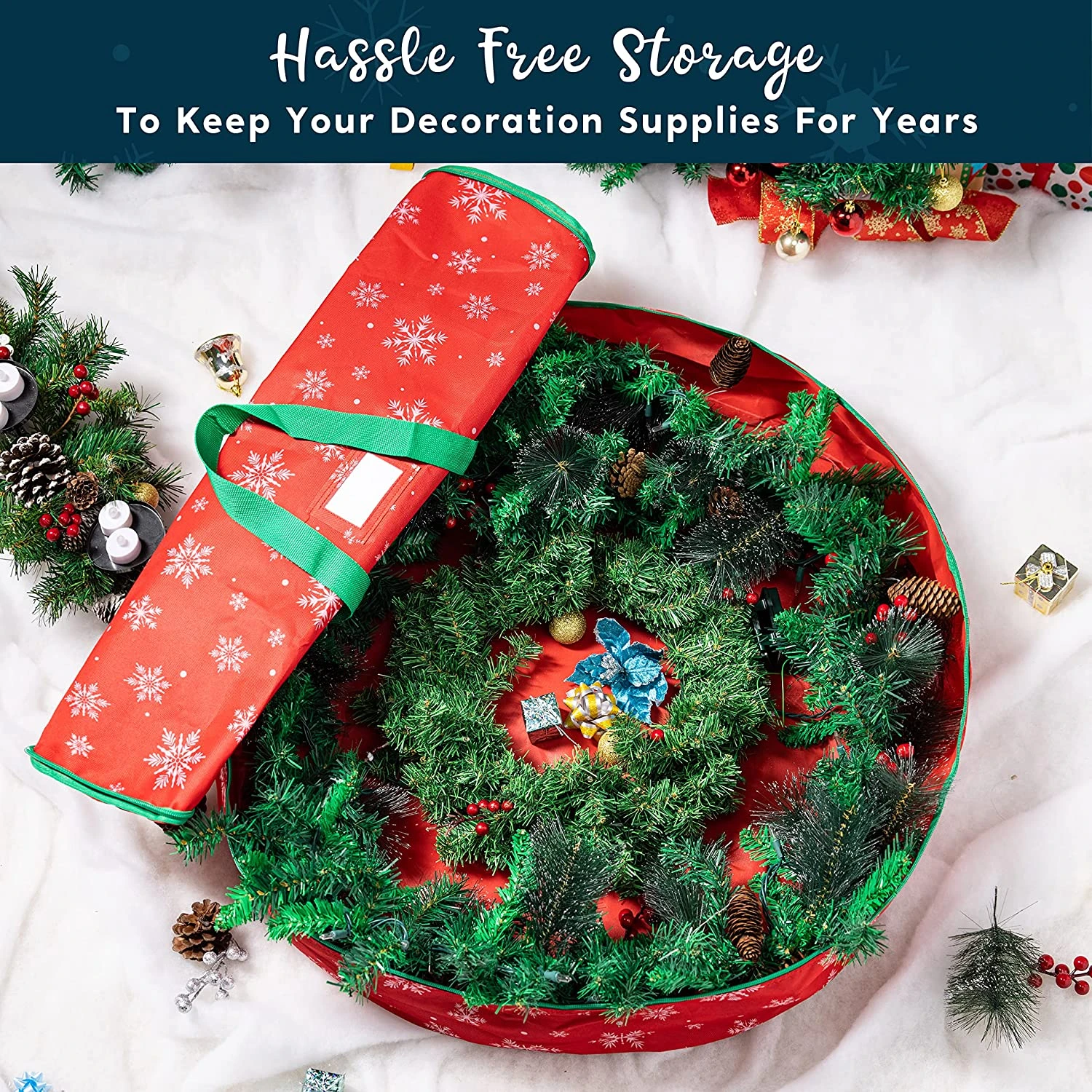 - IDEAL STORAGE. Great way to store your valuable wreath in a pristine condition for the next holiday season. Also works perfectly as a wreath storage container bag present for your friends and family for their valuable decor. They would surely love this storage bag size and durability.