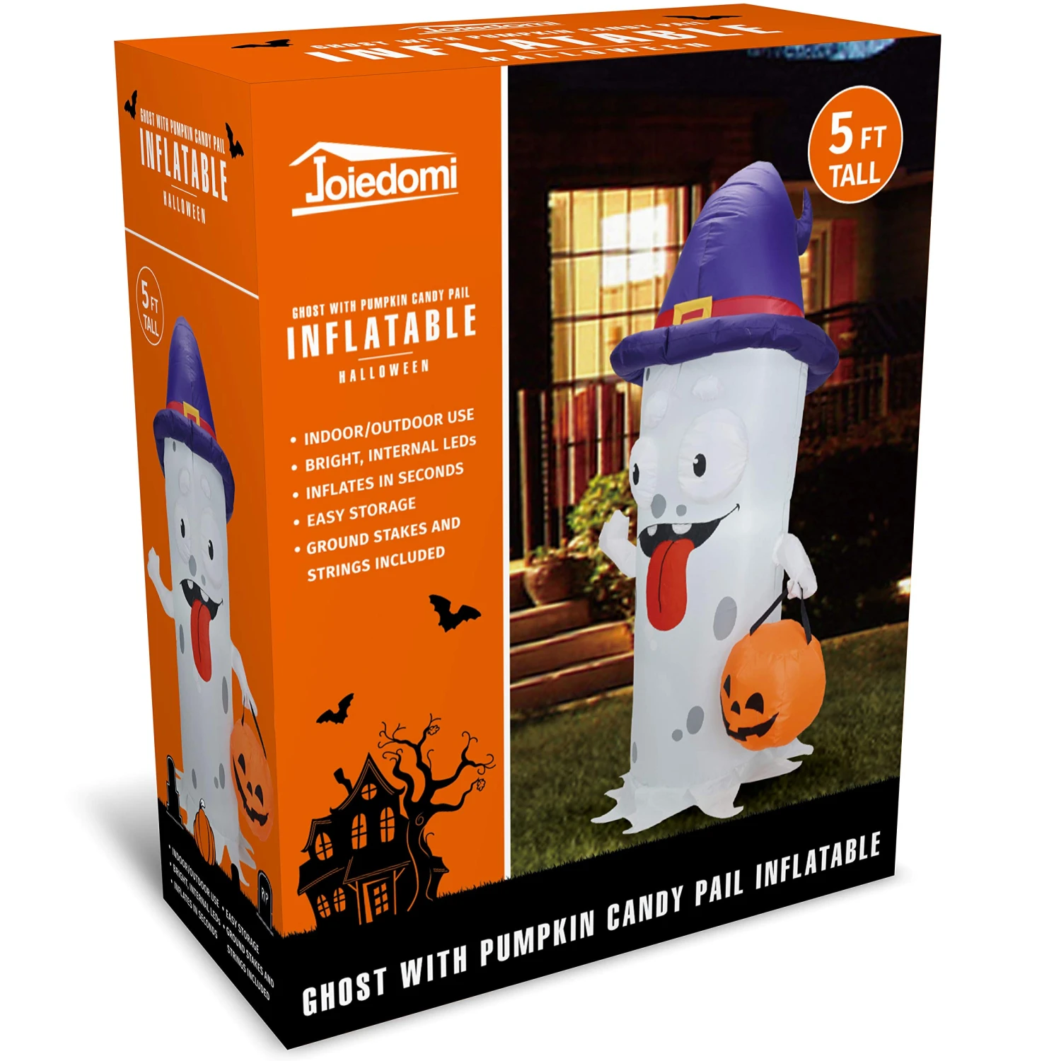 - Our 5 Ft Tall Spooky Inflatable Ghost With Pumpkin Candy Pail. Goofy Spooky Convenient Halloween Holiday Yard Decoration.