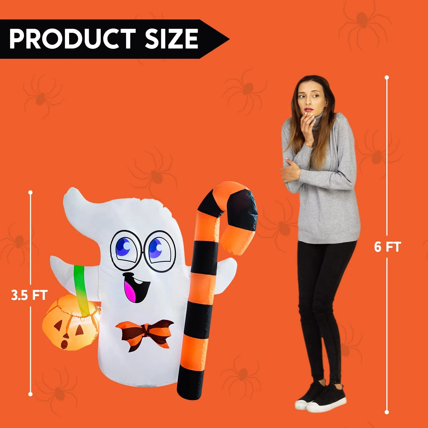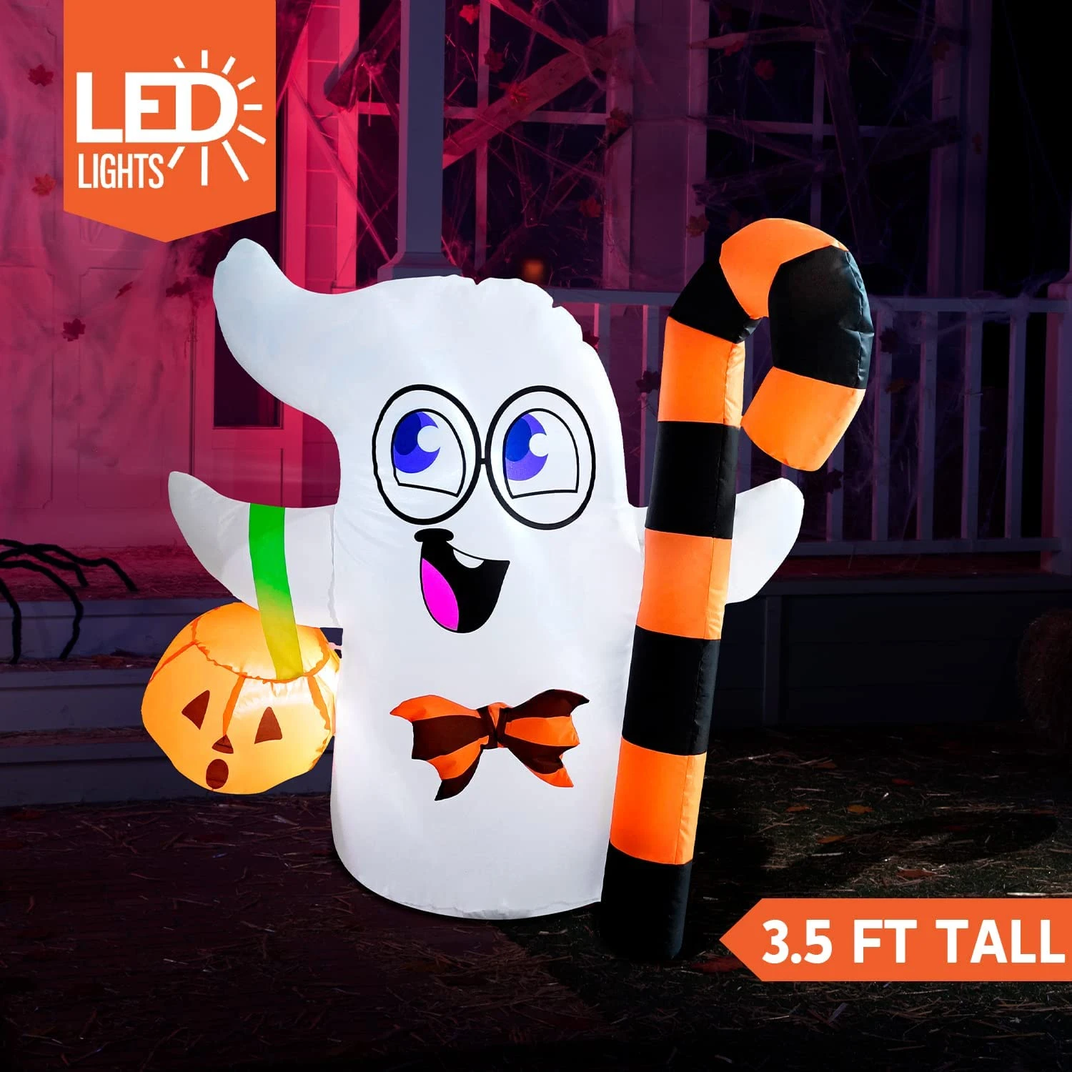 Tall Halloween Cute Ghost Inflatable Halloween Candy Cane (3.5 Ft)