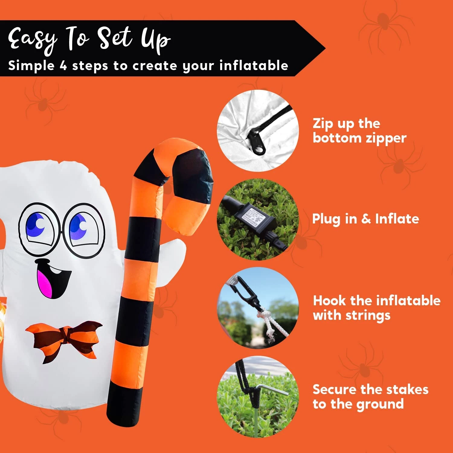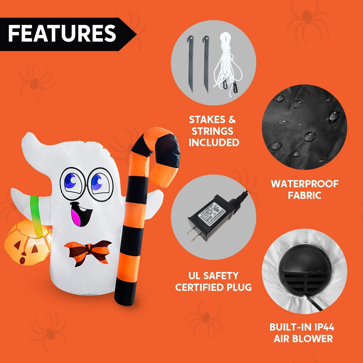 - Our 3.5 ft Tall Cute Ghost Candy Cane Inflatable comes with extended cords, ground stakes, fastened ropes, built-in sandbags, and a plug with UL certification.