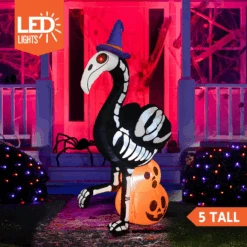 - Our 5 Feet tall blow up skeleton flamingo inflatable comes with extended cords, ground stakes, fastened ropes, built-in sandbags, and a plug with UL certification.