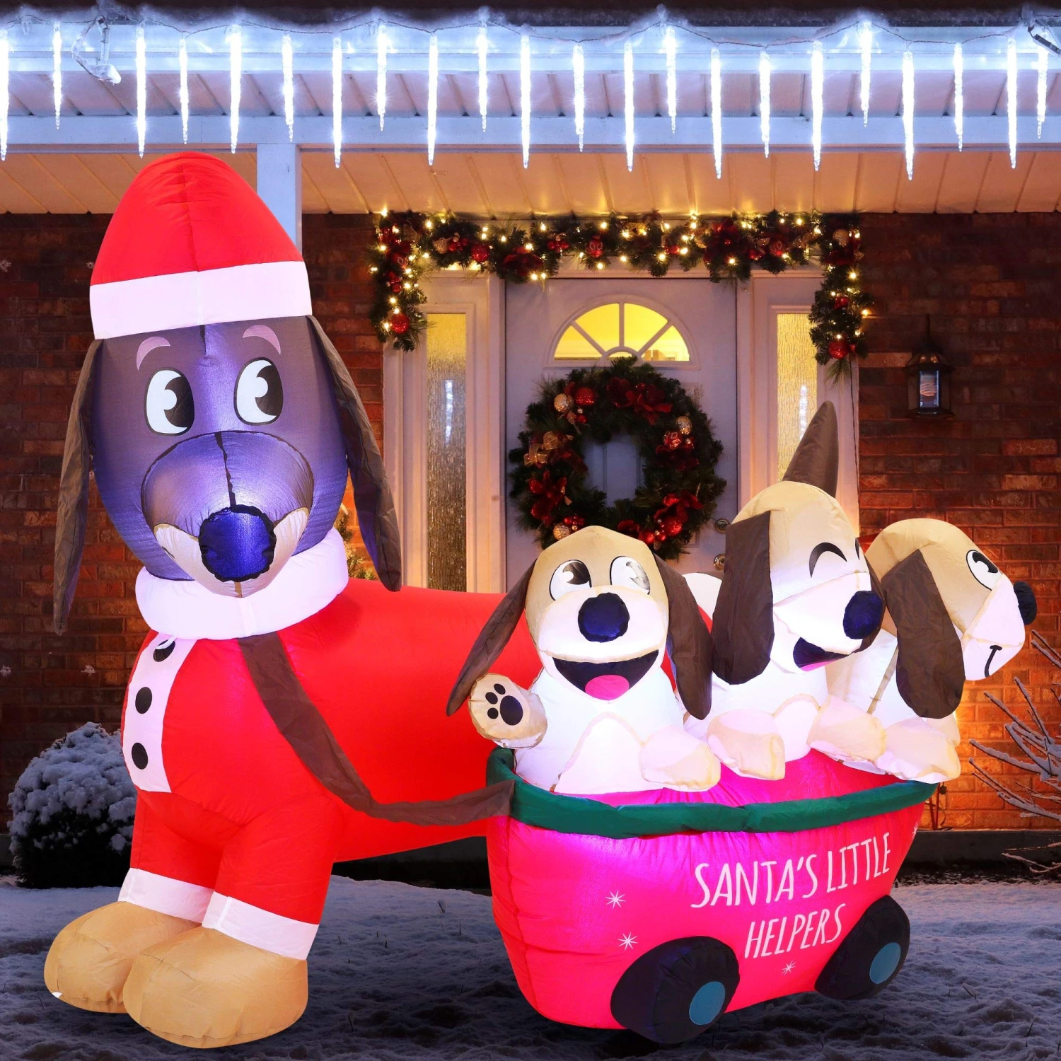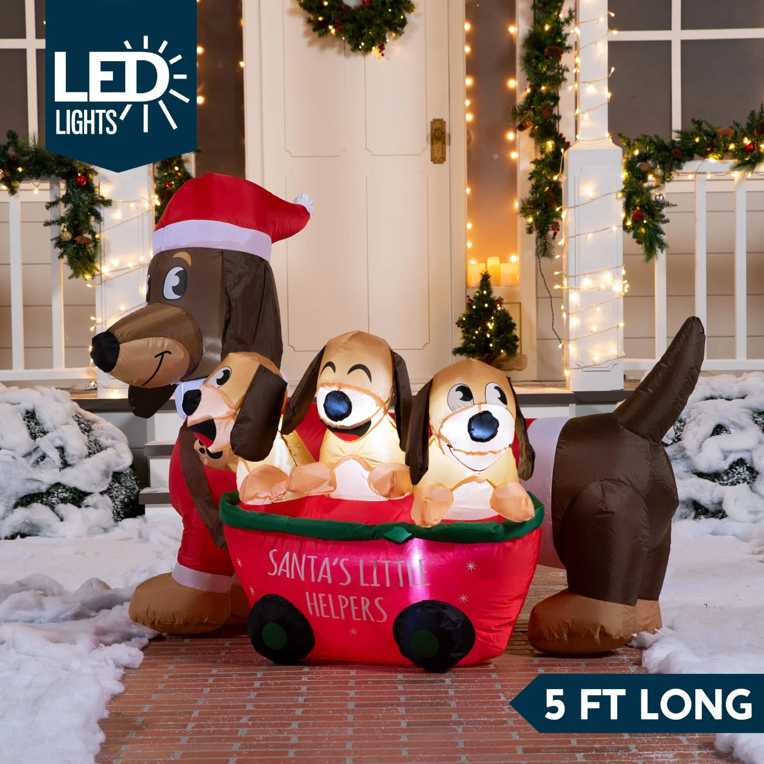 - Our 5 Feet Long Christmas Puppy Inflatable comes with an extended cord, ground stakes, fastened ropes, built-in sandbags, and a plug with UL certification.